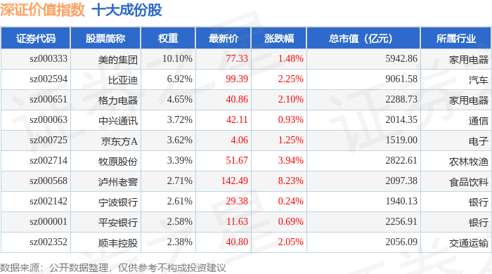 证券之星消息,11月10日,深证价值(399348)指数报收于6563.6点,涨1.32%,成交992.74亿元,换手率1.34%。当日该指数成份股中,上涨的有78家,鲁西化工以9.99%的涨幅领涨,下跌的有21家,杰瑞股份以7.46%的跌幅领跌。