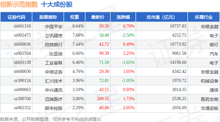 创新示范(399351)指数十大成份股详情如下: