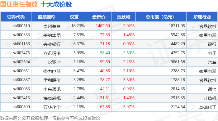 证券之星消息,11月10日,国证责任(399369)指数报收于1573.86点,涨1.19%,成交1103.02亿元,换手率0.95%。当日该指数成份股中,上涨的有73家,盐津铺子以7.85%的涨幅领涨,下跌的有24家,正泰电器以3.89%的跌幅领跌。