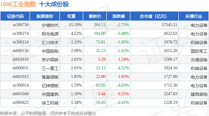 证券之星消息,11月10日,1000工业(399383)指数报收于3057.77点,跌0.74%,成交2885.25亿元,换手率1.68%。当日该指数成份股中,上涨的有115家,东方电气以7.68%的涨幅领涨,下跌的有108家,厦钨新能以6.91%的跌幅领跌。