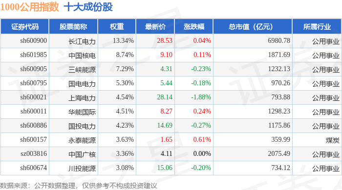 资金流向方面,1000公用(399390)指数成份股当日主力资金净流出合计3684.15万元,游资资金净流出合计2.48亿元,散户资金净流入合计2.85亿元。成份股资金流向详情见下表: