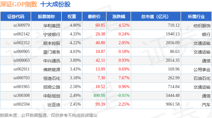 深证GDP(399648)指数十大成份股详情如下: