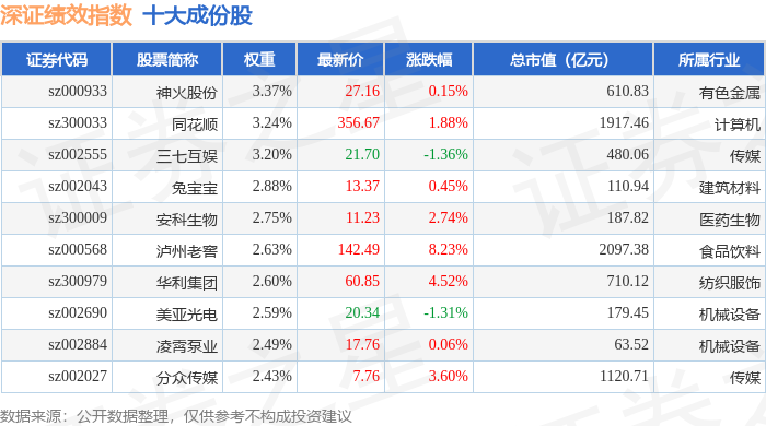 资金流向方面,深证绩效(399655)指数成份股当日主力资金净流出合计7.36亿元,游资资金净流出合计8.91亿元,散户资金净流入合计16.27亿元。成份股资金流向详情见下表: