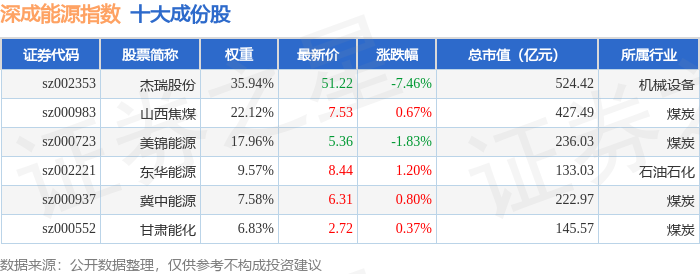 深成能源(399680)指数十大成份股详情如下: