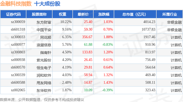 资金流向方面,金融科技(399699)指数成份股当日主力资金净流出合计13.4亿元,游资资金净流入合计1.03亿元,散户资金净流入合计12.37亿元。成份股资金流向详情见下表: