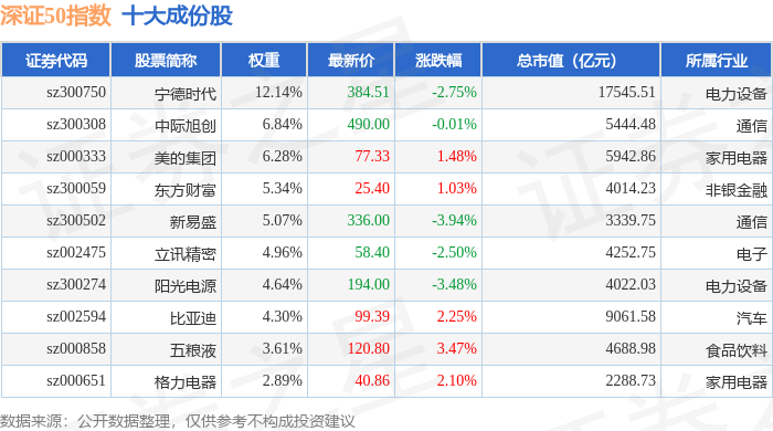 资金流向方面,深证50(399850)指数成份股当日主力资金净流出合计23.08亿元,游资资金净流出合计6.17亿元,散户资金净流入合计29.25亿元。成份股资金流向详情见下表: