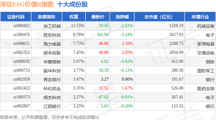 深证ESG价值R(470061)指数十大成份股详情如下: