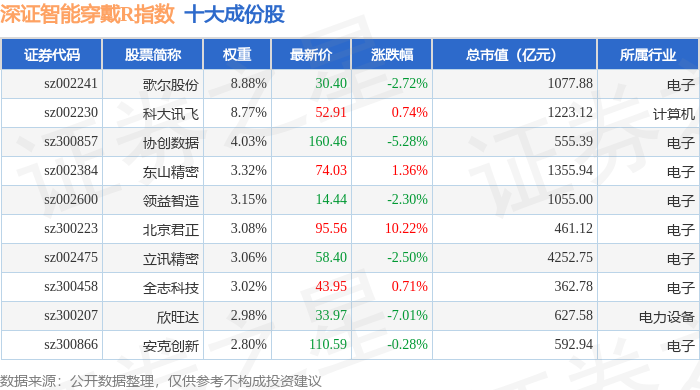 深证智能穿戴R(470074)指数十大成份股详情如下:
