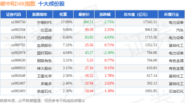 碳中和50R(480021)指数十大成份股详情如下: