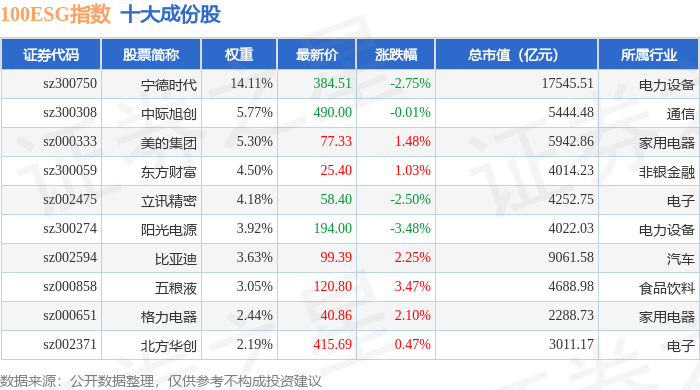资金流向方面,100ESG(970027)指数成份股当日主力资金净流出合计45.3亿元,游资资金净流出合计10.2亿元,散户资金净流入合计55.49亿元。成份股资金流向详情见下表: