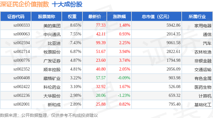 深证民企价值(970072)指数十大成份股详情如下:
