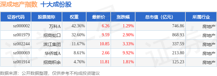 深成地产(971001)指数十大成份股详情如下: