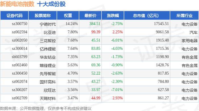 资金流向方面,新能电池(980032)指数成份股当日主力资金净流出合计59.74亿元,游资资金净流入合计12.93亿元,散户资金净流入合计46.81亿元。成份股资金流向详情见下表: