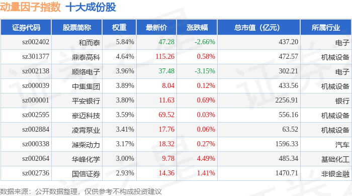 证券之星消息,11月10日,动量因子(980057)指数报收于2386.33点,涨0.17%,成交432.12亿元,换手率1.84%。当日该指数成份股中,上涨的有30家,瑞达期货以9.99%的涨幅领涨,下跌的有20家,大洋电机以4.31%的跌幅领跌。