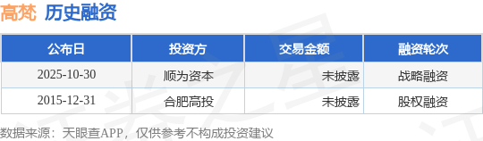证券之星消息,根据天眼查APP于10月30日公布的信息整理,安徽高梵电子商务有限公司战略融资,融资额未披露,参与投资的机构包括顺为资本。