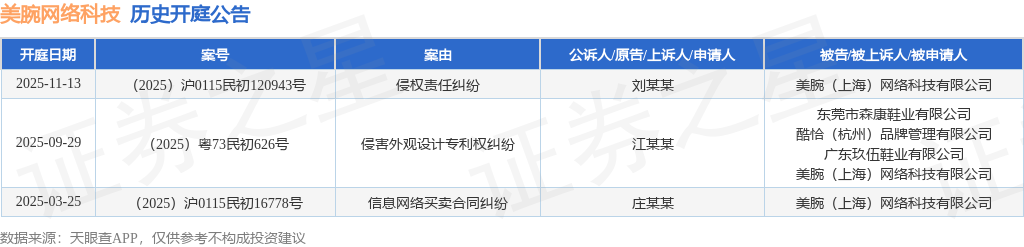证券之星消息,根据天眼查APP显示,近日公布了一则美腕(上海)网络科技有限公司作为被告/被上诉人的开庭公告,详细内容如下: