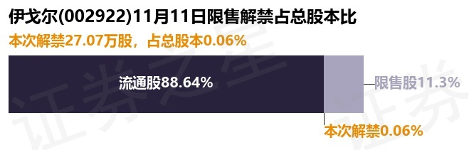 证券之星消息,根据市场公开信息整理,伊戈尔(002922)于11月11日将有27.07万股限售股份解禁,为公司股权激励限售股份,占公司总股本0.06%。(本次数据根据历史公告整理得出,实际情况以上市公司最新公告为准)最近一年内,该股累计解禁354.62万股,占总股本的0.84%。本次解禁后,公司还有4780.36万股限售股份,占总股本11.3%。具体如下图所示:
