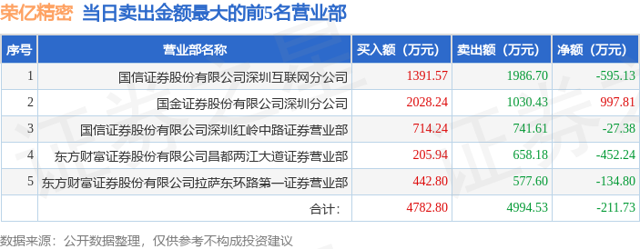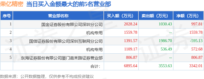 证券之星消息,沪深交易所2025年11月11日公布的交易公开信息显示,荣亿精密(920223)因当日收盘价涨幅达到20%的前5只股票登上龙虎榜。此次是近5个交易日内第1次上榜。