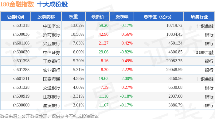 180金融(000018)指数十大成份股详情如下:
