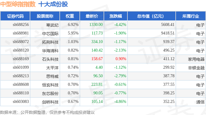 证券之星消息,11月11日,中型综指(000020)指数报收于1661.59点,跌0.46%,成交2110.89亿元,换手率2.75%。当日该指数成份股中,上涨的有475家,上纬新材以20.0%的涨幅领涨,下跌的有422家,海天股份以10.03%的跌幅领跌。