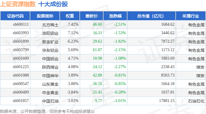 资金流向方面,上证资源(000068)指数成份股当日主力资金净流出合计16.57亿元,游资资金净流入合计3.94亿元,散户资金净流入合计12.63亿元。成份股资金流向详情见下表: