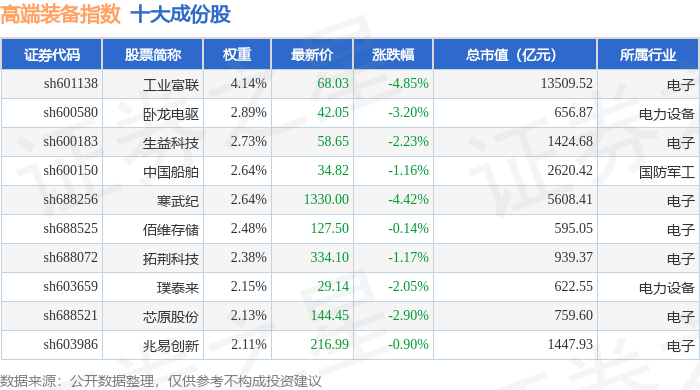 资金流向方面,高端装备(000097)指数成份股当日主力资金净流出合计94.71亿元,游资资金净流入合计27.89亿元,散户资金净流入合计66.82亿元。成份股资金流向详情见下表: