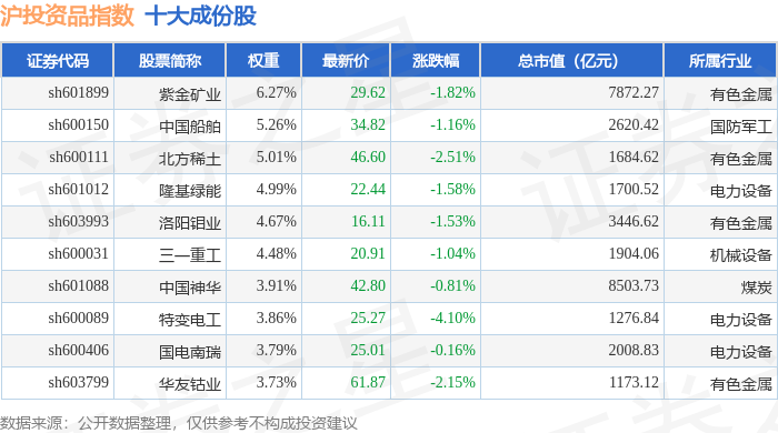 证券之星消息,11月11日,沪投资品(000102)指数报收于7584.09点,跌1.29%,成交925.75亿元,换手率1.74%。当日该指数成份股中,上涨的有6家,三星医疗以10.02%的涨幅领涨,下跌的有42家,特变电工以4.1%的跌幅领跌。