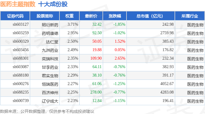证券之星消息,11月11日,医药主题(000121)指数报收于8630.51点,跌0.05%,成交165.42亿元,换手率1.03%。当日该指数成份股中,上涨的有23家,奕瑞科技以2.65%的涨幅领涨,下跌的有26家,泽璟制药以2.03%的跌幅领跌。