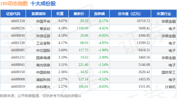 证券之星消息,11月11日,180动态(000123)指数报收于7055.54点,跌1.34%,成交1637.92亿元,换手率0.97%。当日该指数成份股中,上涨的有15家,中国中免以4.19%的涨幅领涨,下跌的有73家,工业富联以4.85%的跌幅领跌。