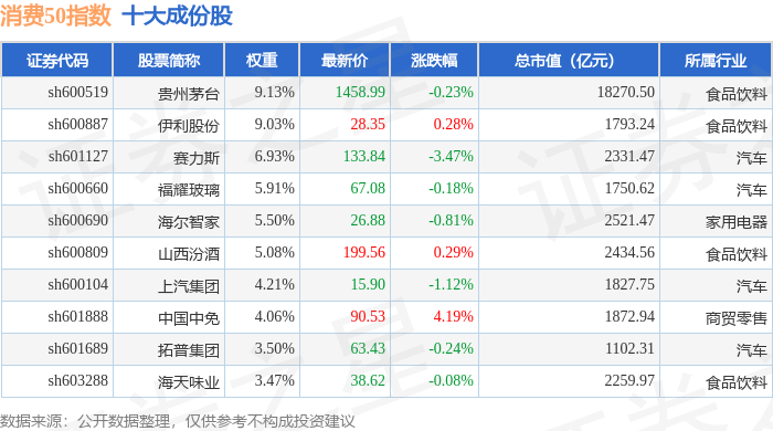 证券之星消息,11月11日,消费50(000126)指数报收于8498.87点,跌0.11%,成交493.7亿元,换手率1.25%。当日该指数成份股中,上涨的有21家,中粮糖业以9.99%的涨幅领涨,下跌的有27家,梅花生物以3.54%的跌幅领跌。