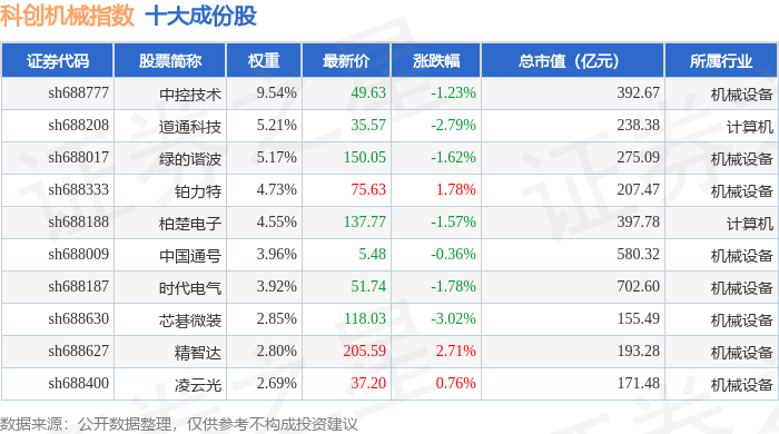 证券之星消息,11月11日,科创机械(000693)指数报收于1332.61点,跌0.86%,成交106.83亿元,换手率0.94%。当日该指数成份股中,上涨的有19家,精智达以2.71%的涨幅领涨,下跌的有31家,美埃科技以6.66%的跌幅领跌。