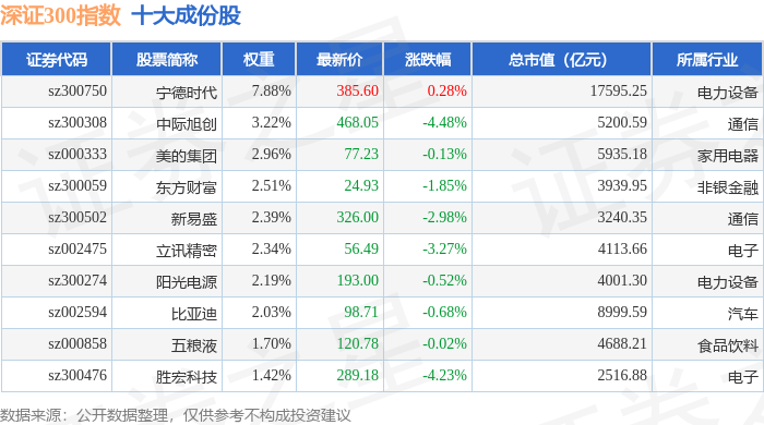 深证300(399007)指数十大成份股详情如下: