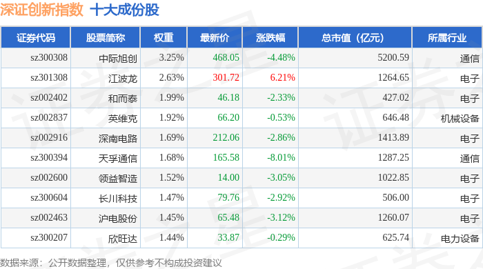 深证创新(399016)指数十大成份股详情如下: