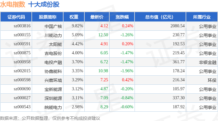 资金流向方面,水电指数(399234)成份股当日主力资金净流出合计8.22亿元,游资资金净流入合计6333.56万元,散户资金净流入合计7.59亿元。成份股资金流向详情见下表:
