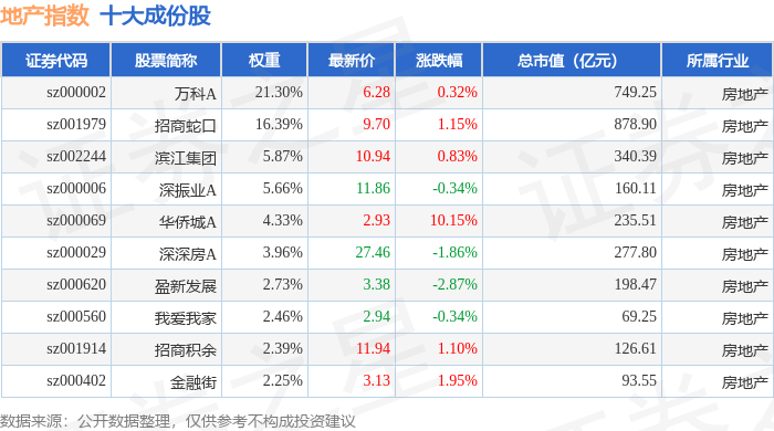 证券之星消息,11月11日,地产指数(399241)报收于1343.58点,涨1.12%,成交134.96亿元,换手率4.07%。当日该指数成份股中,上涨的有27家,华侨城A以10.15%的涨幅领涨,下跌的有8家,合肥城建以6.44%的跌幅领跌。