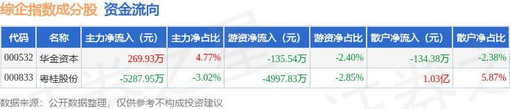 资金流向方面,综企指数(399249)成份股当日主力资金净流出合计5018.03万元,游资资金净流出合计5133.38万元,散户资金净流入合计1.02亿元。成份股资金流向详情见下表:
