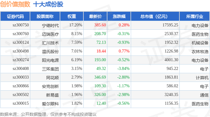 证券之星消息,11月11日,创价值(399295)指数报收于5457.1点,跌0.79%,成交924.64亿元,换手率2.0%。当日该指数成份股中,上涨的有12家,新宙邦以5.25%的涨幅领涨,下跌的有38家,天孚通信以8.01%的跌幅领跌。