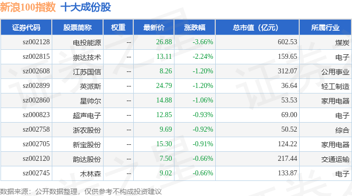 近10日内新浪100(399297)指数成份股做了调整,新纳入了52只股票,剔除了52只股票。