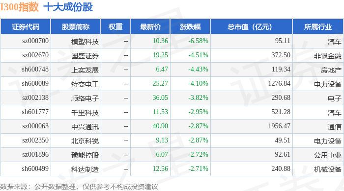 资金流向方面,I300(399416)指数成份股当日主力资金净流出合计43.51亿元,游资资金净流入合计7.25亿元,散户资金净流入合计36.26亿元。成份股资金流向详情见下表: