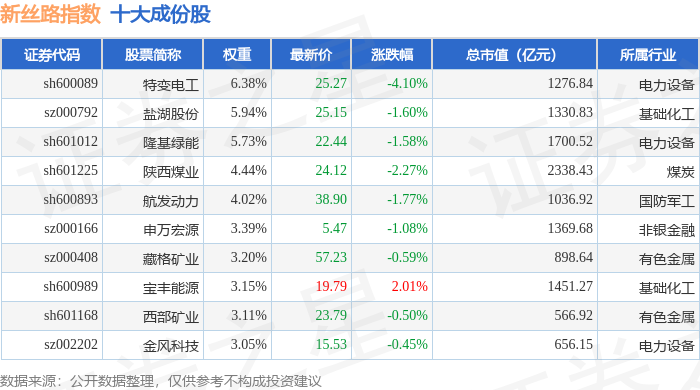 新丝路(399429)指数十大成份股详情如下: