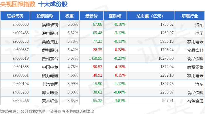 证券之星消息,11月11日,央视回报(399553)指数报收于7688.65点,跌0.16%,成交588.31亿元,换手率1.6%。当日该指数成份股中,上涨的有23家,方大炭素以9.98%的涨幅领涨,下跌的有26家,天齐锂业以3.81%的跌幅领跌。
