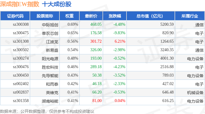 证券之星消息,11月11日,深成指EW(399659)指数报收于4671.95点,跌0.63%,成交5274.67亿元,换手率1.84%。当日该指数成份股中,上涨的有182家,华侨城A以10.15%的涨幅领涨,下跌的有306家,香农芯创以9.83%的跌幅领跌。