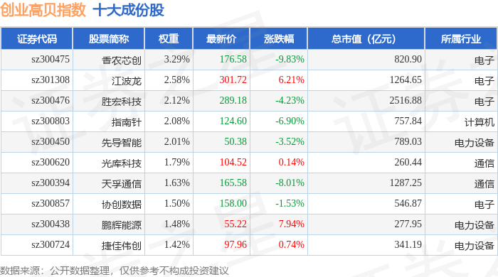 证券之星消息,11月11日,创业高贝(399694)指数报收于4170.44点,跌1.31%,成交1373.66亿元,换手率3.45%。当日该指数成份股中,上涨的有26家,鹏辉能源以7.94%的涨幅领涨,下跌的有73家,香农芯创以9.83%的跌幅领跌。