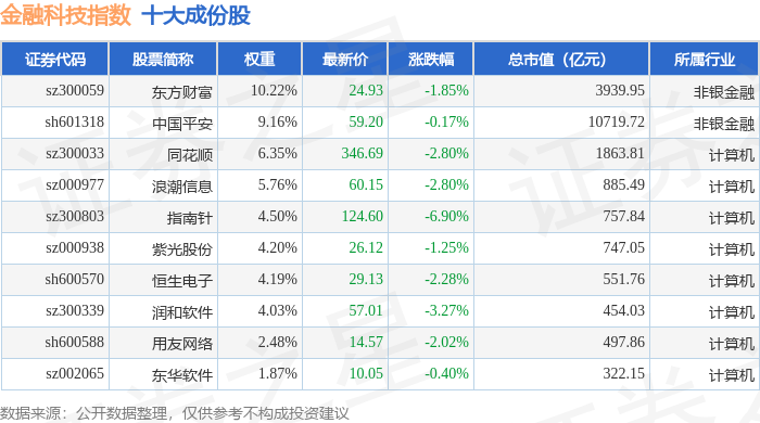 资金流向方面,金融科技(399699)指数成份股当日主力资金净流出合计56.03亿元,游资资金净流入合计14.95亿元,散户资金净流入合计41.08亿元。成份股资金流向详情见下表: