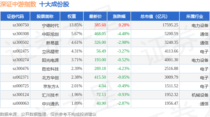 证券之星消息,11月11日,深证中游(399705)指数报收于4166.13点,跌1.31%,成交2649.52亿元,换手率1.95%。当日该指数成份股中,上涨的有45家,江波龙以6.21%的涨幅领涨,下跌的有101家,天孚通信以8.01%的跌幅领跌。