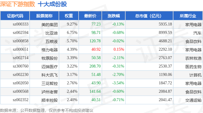 深证下游(399706)指数十大成份股详情如下: