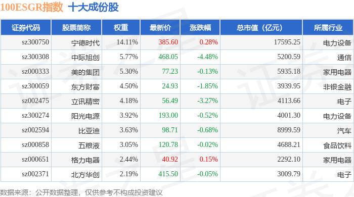 资金流向方面,100ESGR(470027)指数成份股当日主力资金净流出合计119.11亿元,游资资金净流入合计35.16亿元,散户资金净流入合计83.96亿元。成份股资金流向详情见下表: