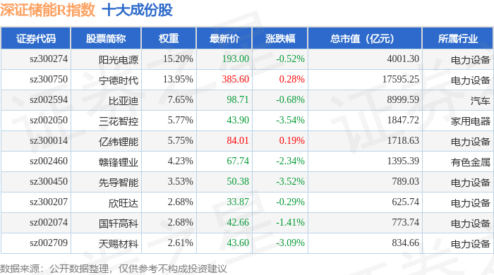 资金流向方面,深证储能R(470036)指数成份股当日主力资金净流出合计43.51亿元,游资资金净流入合计1.99亿元,散户资金净流入合计41.51亿元。成份股资金流向详情见下表: