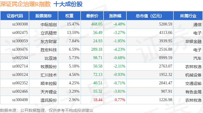资金流向方面,深证民企治理R(470058)指数成份股当日主力资金净流出合计90.13亿元,游资资金净流入合计23.49亿元,散户资金净流入合计66.64亿元。成份股资金流向详情见下表: