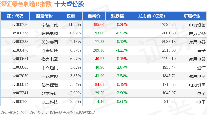 深证绿色制造R(470069)指数十大成份股详情如下: